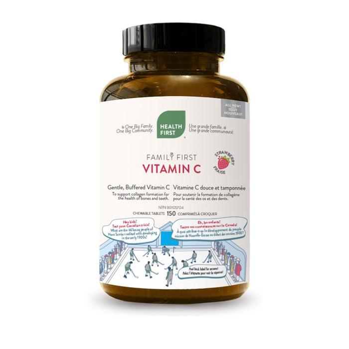 Family First Vitamin C Chewable contains 400 mg of vitamin C including sodium ascorbate, that buffered form of vitamin C that is gentler on the oral cavity and digestive tract. It’s vegan and free from magnesium stearate, dairy, soy, and yeast. It comes in a delicious, natural strawberry flavour that tastes like a fresh-picked strawberry, and is made with clean sweeteners: xylitol and monk fruit. Family First Vitamin C Chewable is a catch-all for your family’s health, healing, protection, and growth. Building healthy families starts with vitamin C!